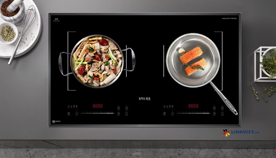 | Tính năng an toàn | Chức năng chống trào nước thông minh, Chức năng tắt tự động tắt bếp khi không có nồi, Khóa an toàn trẻ em, Hẹn giờ giới hạn thời gian hoạt động, Bảo vệ quá nhiệt (cảm biến nhiệt độ tích hợp trong từng vùng nấu), Cảnh báo nhiệt dư cho từng vùng nấu |