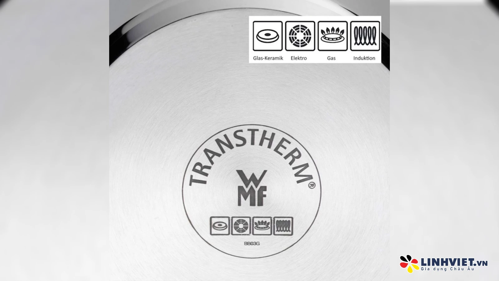 Đế vạn năng TransTherm® cao cấp phân phối và giữ nhiệt hiệu quả, giúp tiết kiệm năng lượng khi nấu. Phù hợp với mọi loại bếp, kể cả bếp từ.