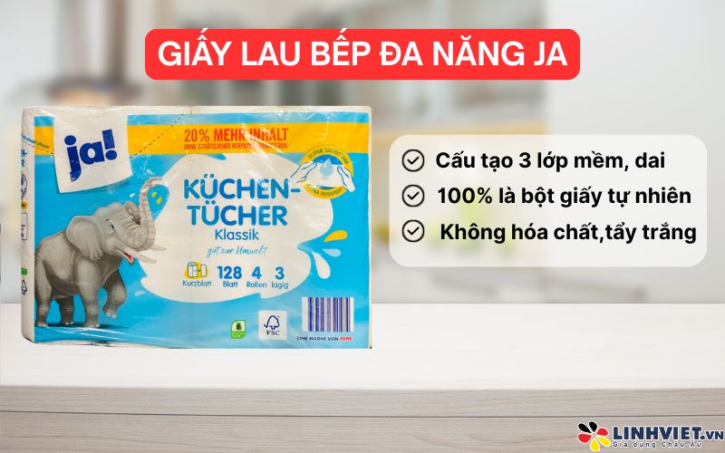 Giấy lau đa năng JA là sản phẩm chất lượng cao đến từ thị trường nội địa Đức, được thiết kế chuyên biệt cho nhu cầu lau chùi trong gia đình hiện đại. Với khả năng thấm hút vượt trội, độ bền cao và thân thiện với môi trường, JA là lựa chọn lý tưởng thay thế cho các loại giấy thông thường.