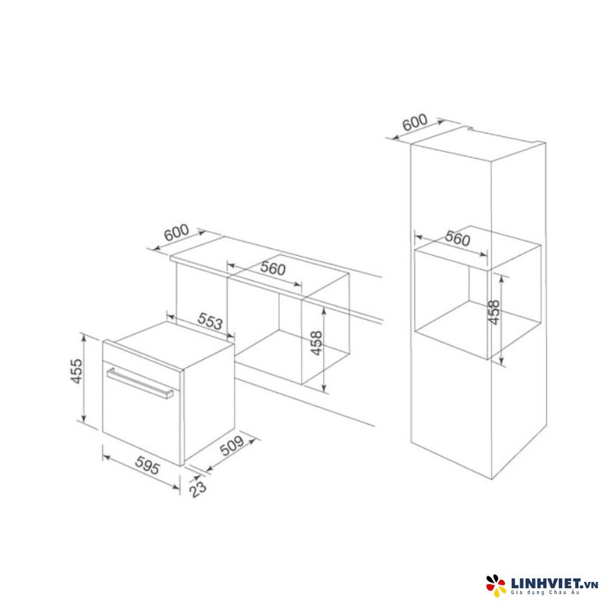 Lò Malloca MST-48CP có kích thước tối ưu W595 x D532 x H455mm, phù hợp với nhiều không gian bếp. Thiết kế âm tủ không chỉ tiết kiệm diện tích mà còn cho phép lắp đặt linh hoạt tại nhiều vị trí, lý tưởng cho cả những không gian nhỏ hẹp.