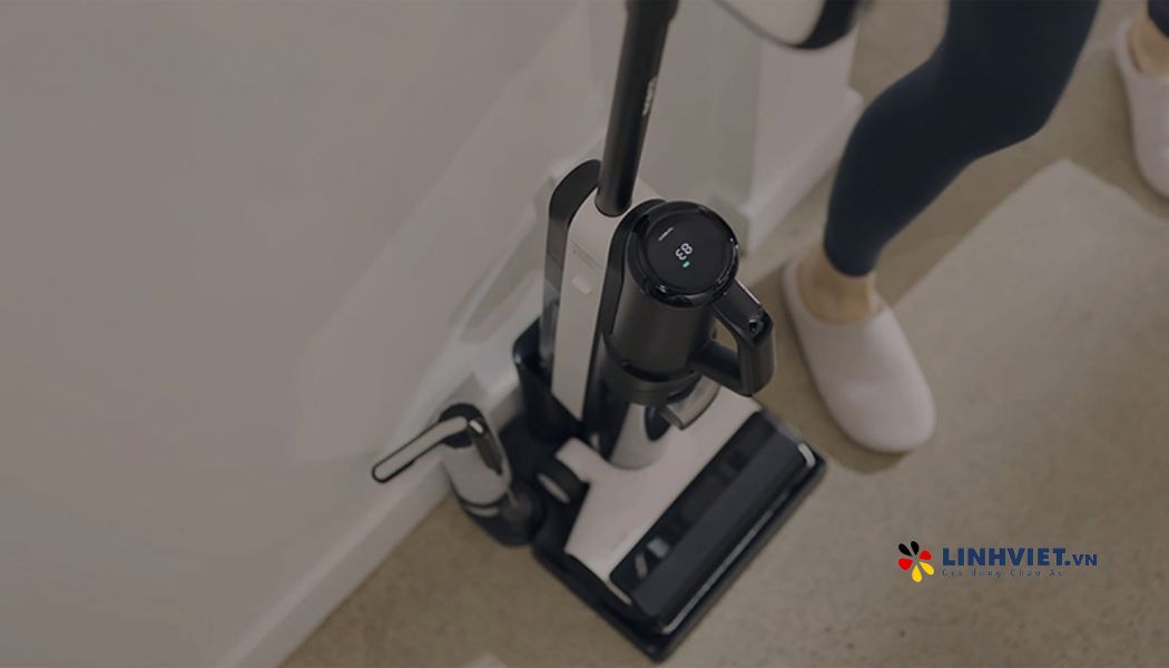 Máy còn tích hợp pin thông minh iLoop, cho phép hoạt động từ 15-20 phút cho chế độ lau sàn và 25-50 phút cho chế độ máy cầm tay, phù hợp với việc làm sạch căn hộ hoặc phòng nhỏ có bề mặt sàn cứng.