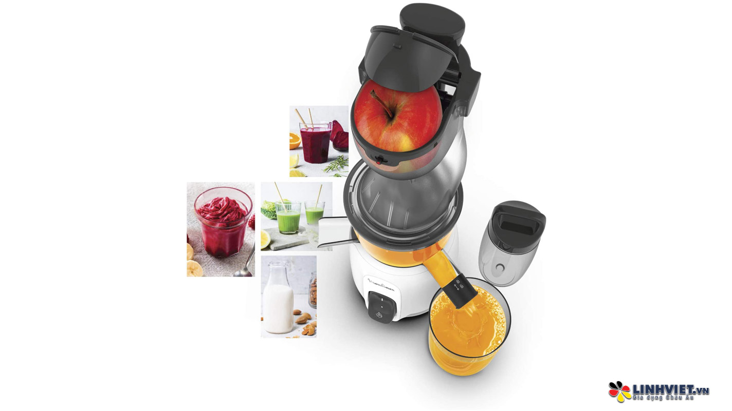 Máy ép chậm Moulinex ZU600110 từ Đức sở hữu công nghệ tiên tiến, giúp chiết xuất nước trái cây hiệu quả, giữ nguyên hương vị, màu sắc tự nhiên và tất cả chất dinh dưỡng của trái cây và rau củ. Với ống tiếp liệu rộng 85 mm, bạn không cần cắt nhỏ trái cây và rau củ trước khi ép. Máy còn dễ dàng làm sạch nhờ chương trình “EasyClean” tự động, mang lại sự tiện lợi cho cuộc sống hàng ngày của bạn.