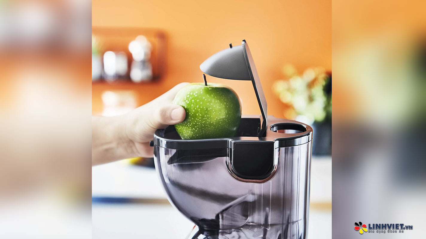 Ống tiếp liệu rộng 85mm giúp tối ưu hóa quá trình ép trái cây và rau củ, cho phép bạn ép nguyên liệu mà không cần cắt nhỏ, tiết kiệm thời gian và công sức.