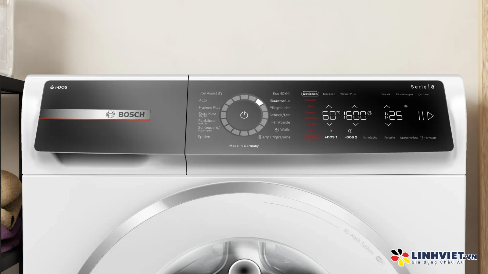 Máy giặt Bosch WGB256A90 từ Châu Âu mang đến trải nghiệm giặt giũ đẳng cấp với hàng loạt công nghệ tiên tiến. Đặc biệt, i-DOS tự động cân đo lượng nước và chất tẩy rửa chính xác, cùng Iron Assist giảm nhăn tới 50%, giúp quần áo sạch sẽ và tươm tất hơn bao giờ hết. Hãy cùng Linh Việt khám phá ngay sản phẩm này!