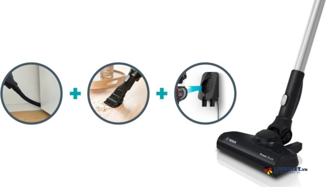 Với ống nối dài tiện lợi, bạn dễ dàng làm sạch mọi loại bụi bẩn, từ sàn nhà cho đến các khu vực cao như trần nhà, đảm bảo không gian luôn sạch sẽ và thoáng đãng.