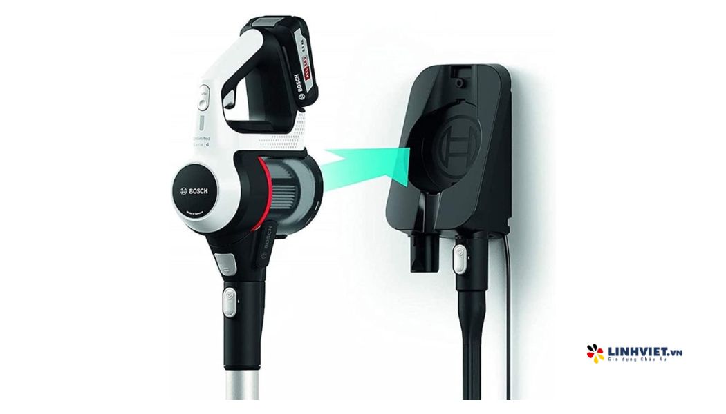 Dễ dàng lưu trữ với đế sạc gắn tường, giúp bạn bảo quản máy hút bụi gọn gàng và thuận tiện, đồng thời dễ dàng tiếp cận các phụ kiện khi cần sử dụng.