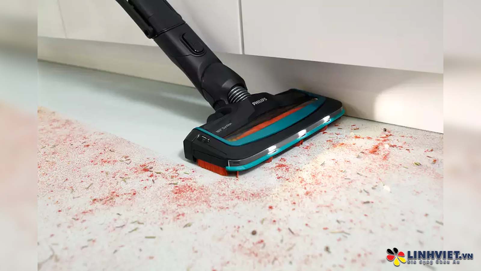 Đèn LED thông minh: Đầu hút được trang bị đèn LED giúp phát hiện và hút sạch bụi bẩn, lông tơ, tóc và vụn bánh mì dễ dàng, ngay cả những nơi tối tăm.