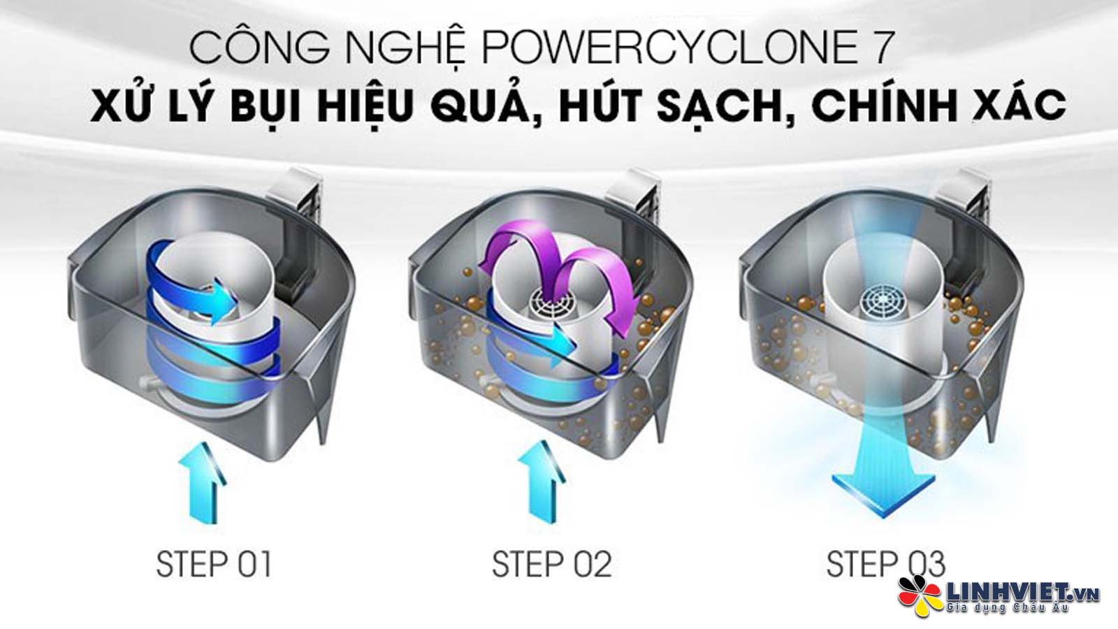 Động cơ PowerBlade: Thiết kế cho tốc độ không khí cao, giúp hút mạnh và chính xác mọi bụi bẩn. Công nghệ PowerCyclone 7 tách bụi khỏi không khí ngay tức thì, duy trì hiệu suất mạnh mẽ lâu dài.