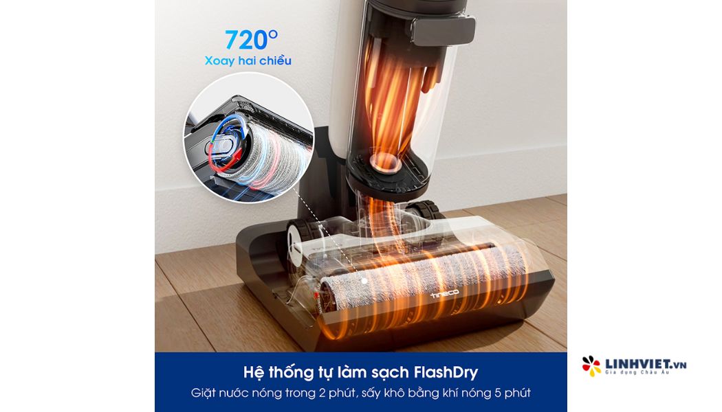 Máy hút bụi lau sàn Tineco Switch S7 sử dụng công nghệ MHCBS để làm sạch con lăn hiệu quả. Công nghệ này bơm nước sạch liên tục, giúp con lăn quay và loại bỏ rác cùng vết bẩn, ngay lập tức hút nước bẩn vào bình chứa.