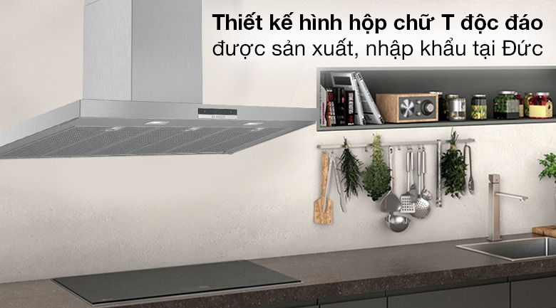 Máy hút mùi Bosch DWB97DM50B, sản xuất và nhập khẩu từ Đức, có thiết kế hình hộp chữ T độc đáo. Sản phẩm tích hợp nhiều công nghệ hiện đại, giúp nhà bếp luôn sạch mùi thức ăn.