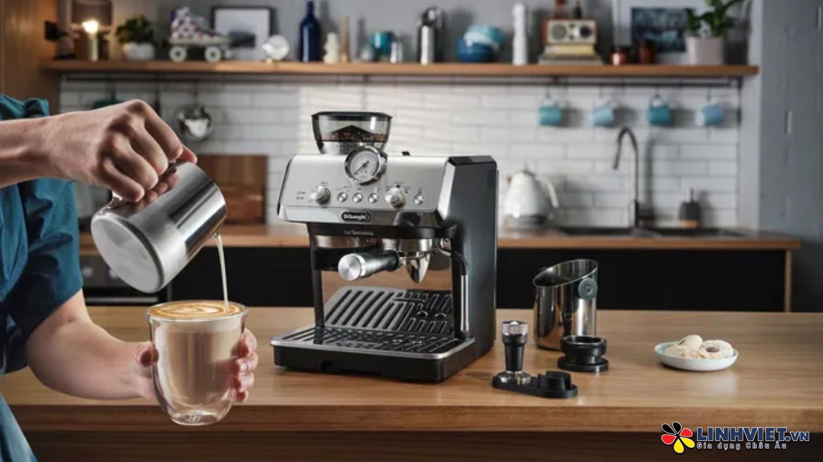 Sáng tạo sữa đích thực: Tạo bọt sữa thủ công để có lớp bọt mịn lý tưởng, mang đến trải nghiệm pha chế đích thực.