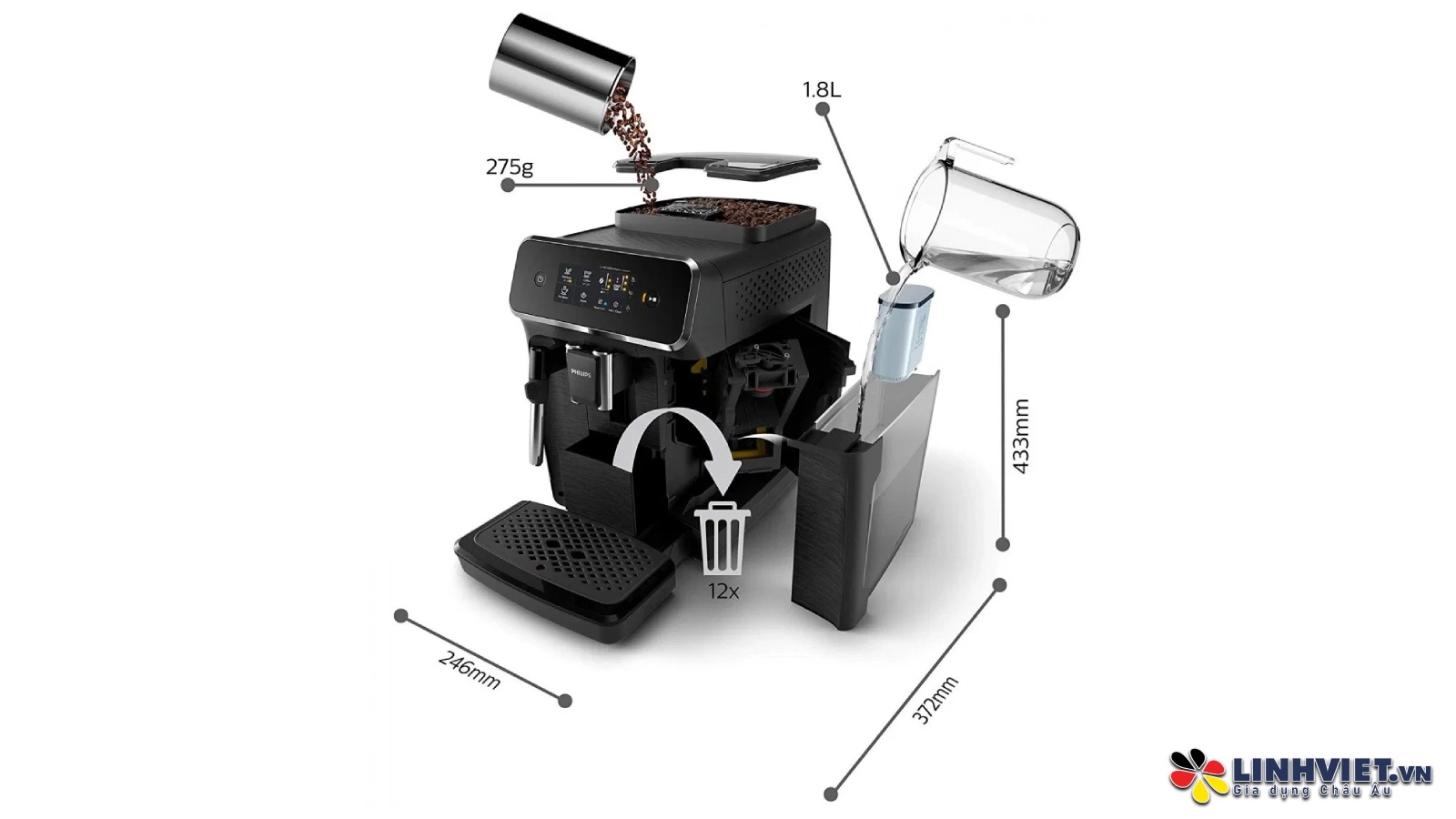 | Dung tích chứa bã cà phê | 12 phần |