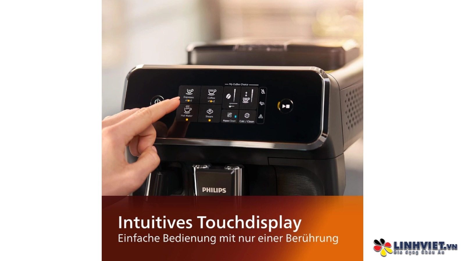 Thiết kế màn hình rộng với giao diện SensorTouch cho phép bạn dễ dàng chọn loại thức uống chỉ bằng một lần chạm. Thao tác đơn giản giúp bạn tận hưởng vị cà phê chuẩn chỉnh nhất.