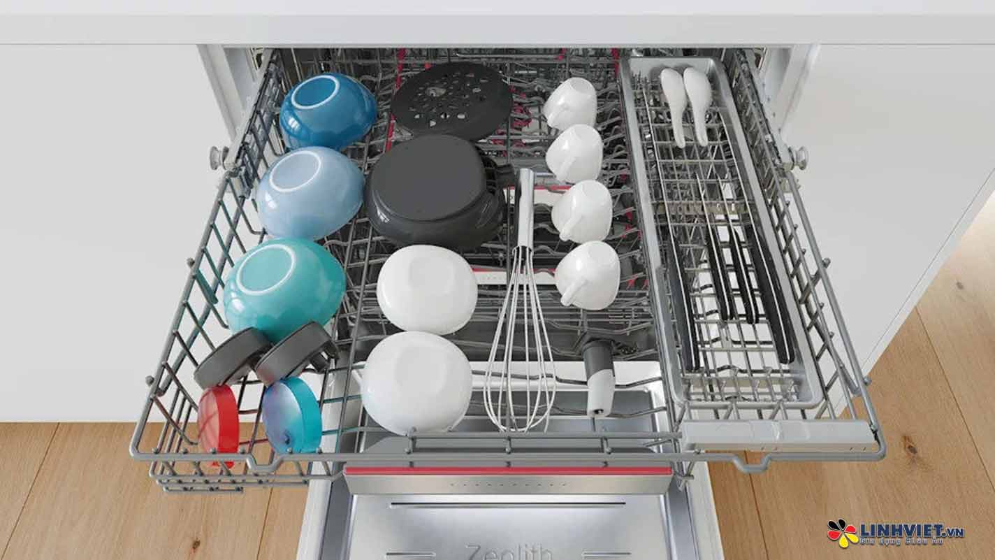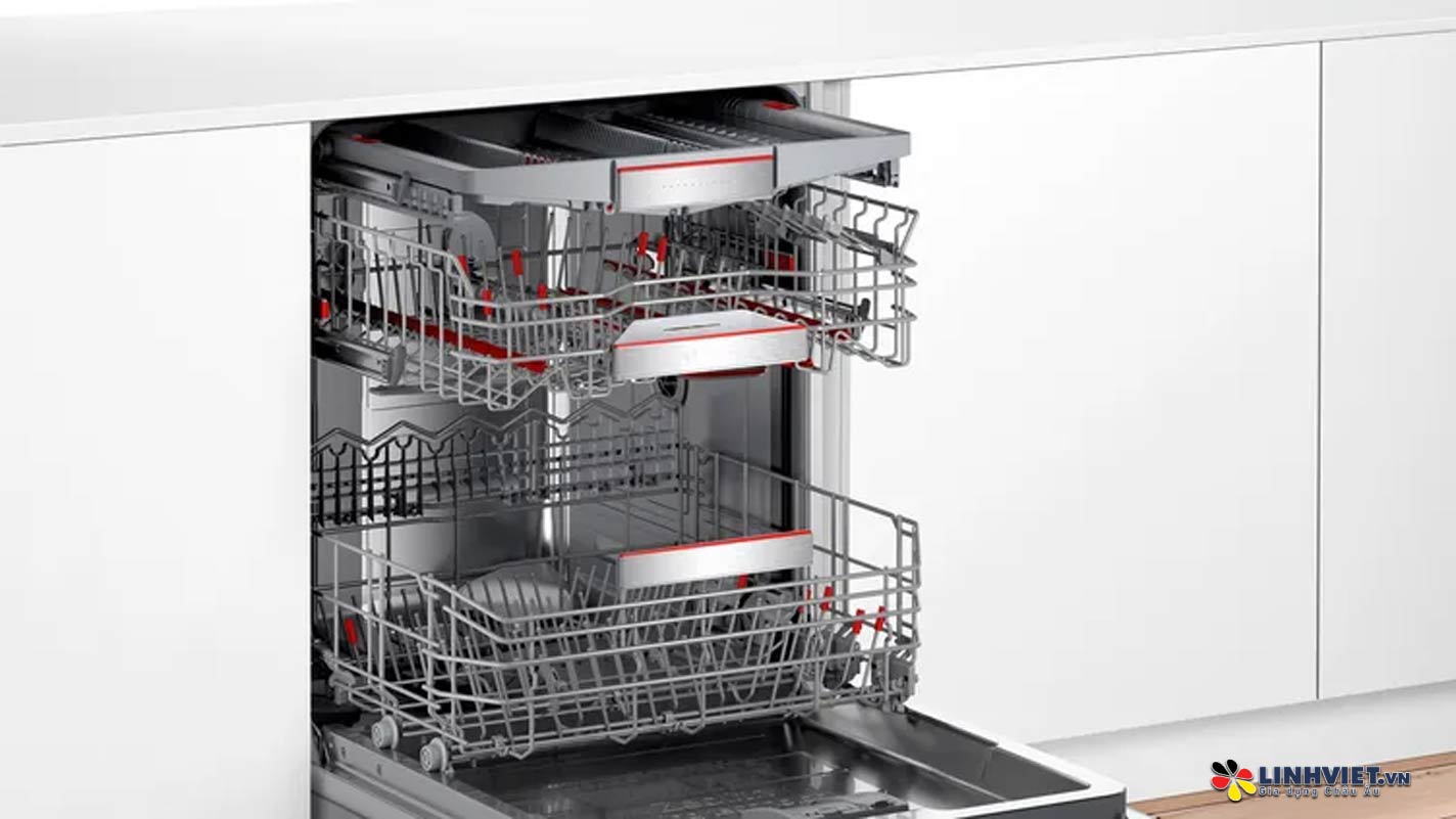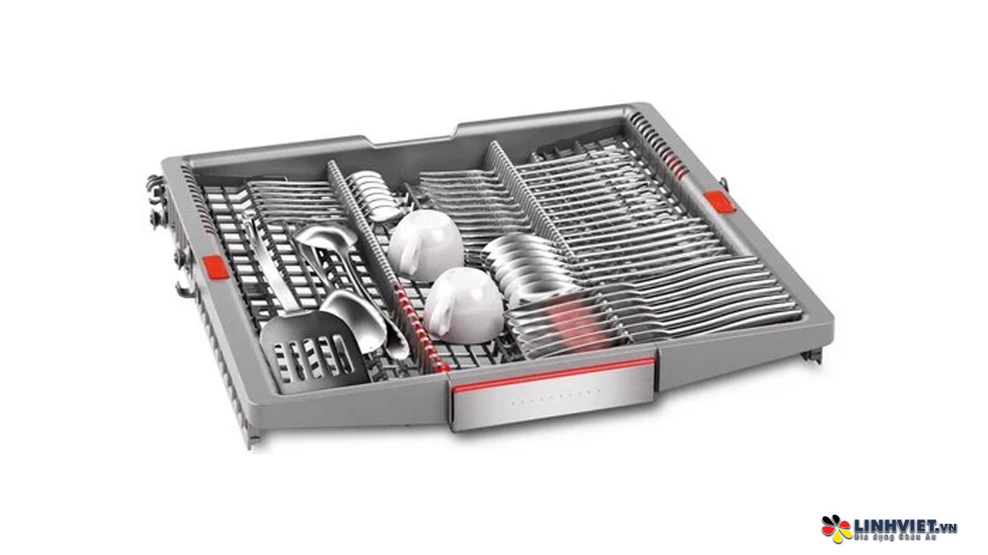 Máy rửa bát bán âm Bosch SMI8YCS02E có sức chứa lên đến 14 bộ đồ ăn châu Âu, tương đương với khoảng 3 – 4 bữa ăn của gia đình Việt, rất lý tưởng cho nhà có từ 4 đến 6 thành viên. Máy còn được trang bị 3 giàn rửa riêng biệt, giúp sắp xếp bát đĩa gọn gàng, tối ưu không gian và tăng thêm diện tích cho ngăn dưới cùng, đáp ứng nhu cầu sử dụng đa dạng của gia đình.