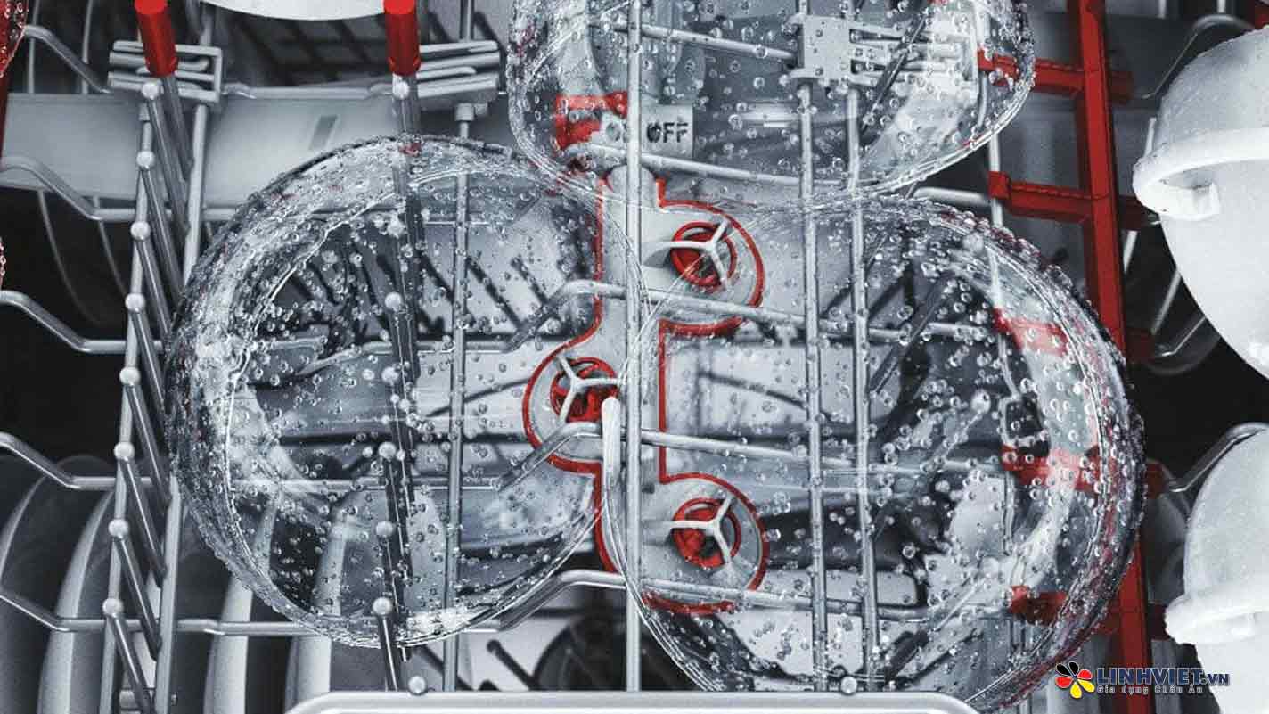 Đặc biệt, khi dùng chương trình ECO, máy chỉ tiêu thụ khoảng 9,5 lít nước mỗi lần rửa, giúp giảm đáng kể lượng nước sử dụng mà vẫn đảm bảo hiệu quả làm sạch.