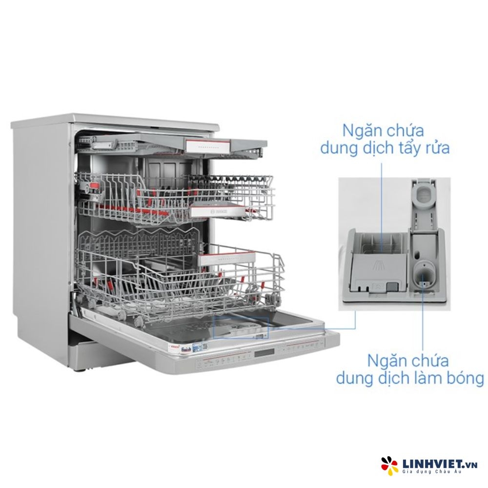 Máy rửa bát Bosch SMS8YCI01E có khả năng rửa tối đa 14 bộ đồ ăn châu Âu trong một lần rửa, tương đương lượng bát đĩa của 3 – 4 bữa ăn Việt. Với công suất này, máy hoàn toàn đáp ứng nhu cầu sử dụng của gia đình từ 4 – 6 người, chỉ cần rửa 1 lần/ngày.