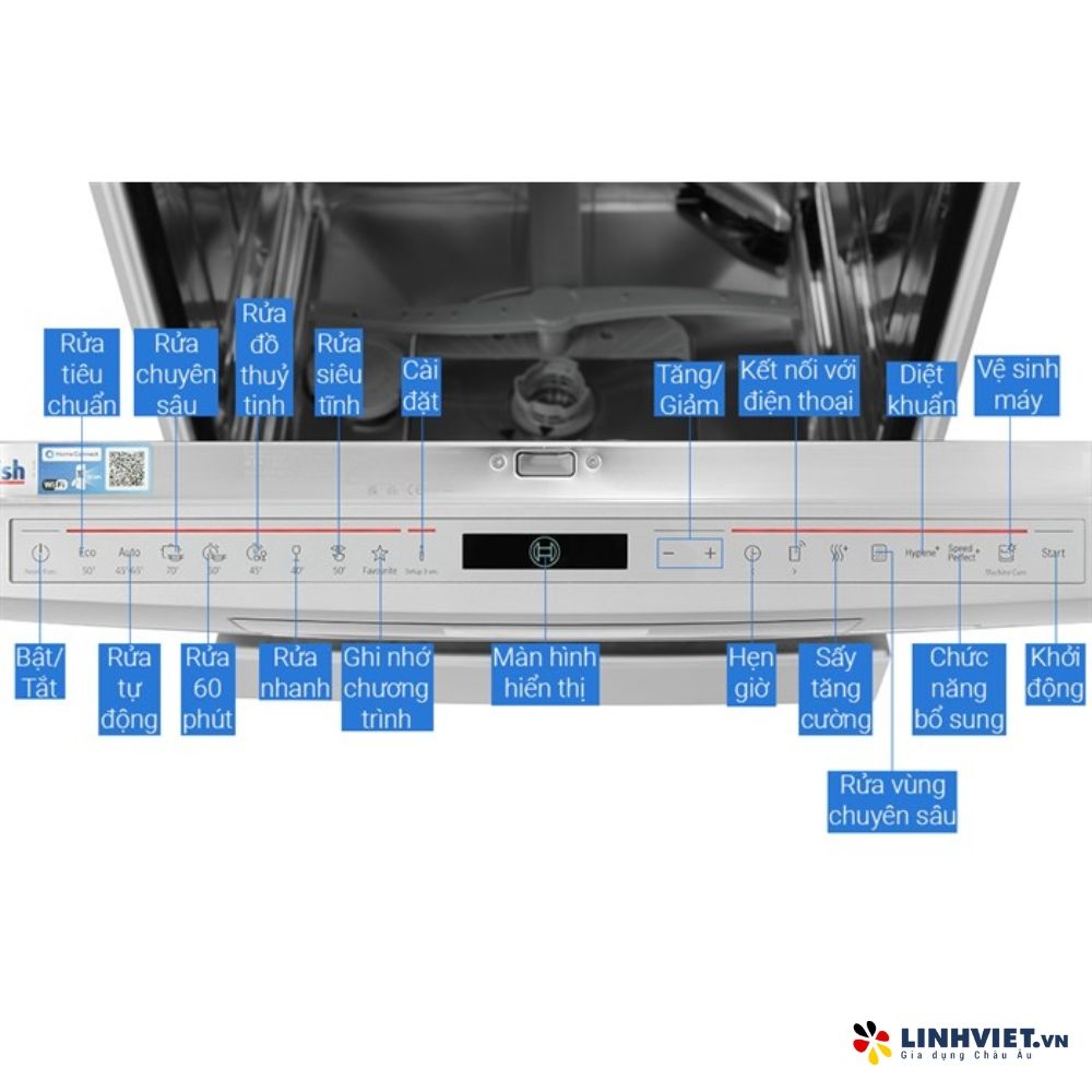 Máy rửa bát còn tích hợp 2 màn hình hiển thị ở giữa bảng điều khiển và mặt trước cửa, giúp người dùng theo dõi trạng thái hoạt động, chương trình rửa, thời gian còn lại... mà không cần mở cửa máy.