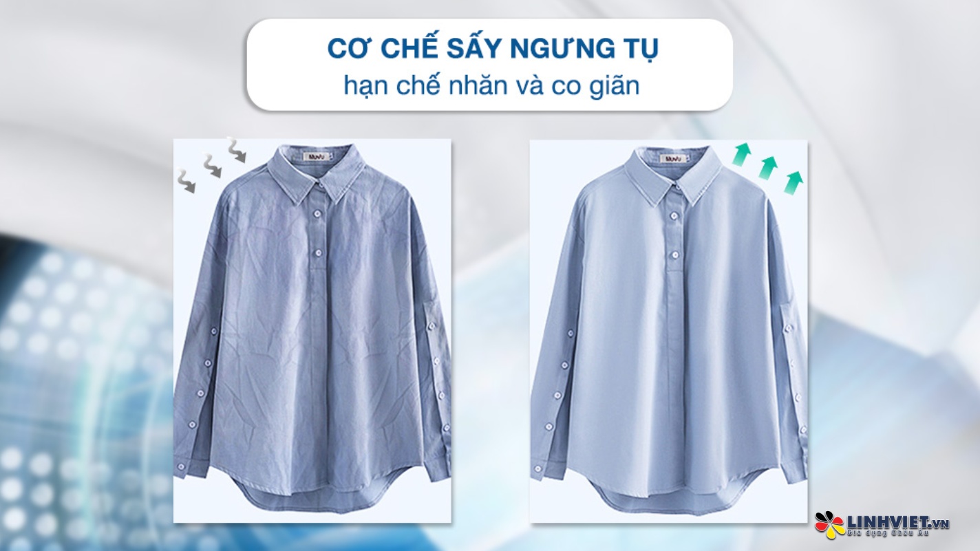 Với các chương trình sấy linh hoạt này, bạn có thể dễ dàng chăm sóc quần áo một cách hiệu quả và tiết kiệm thời gian.