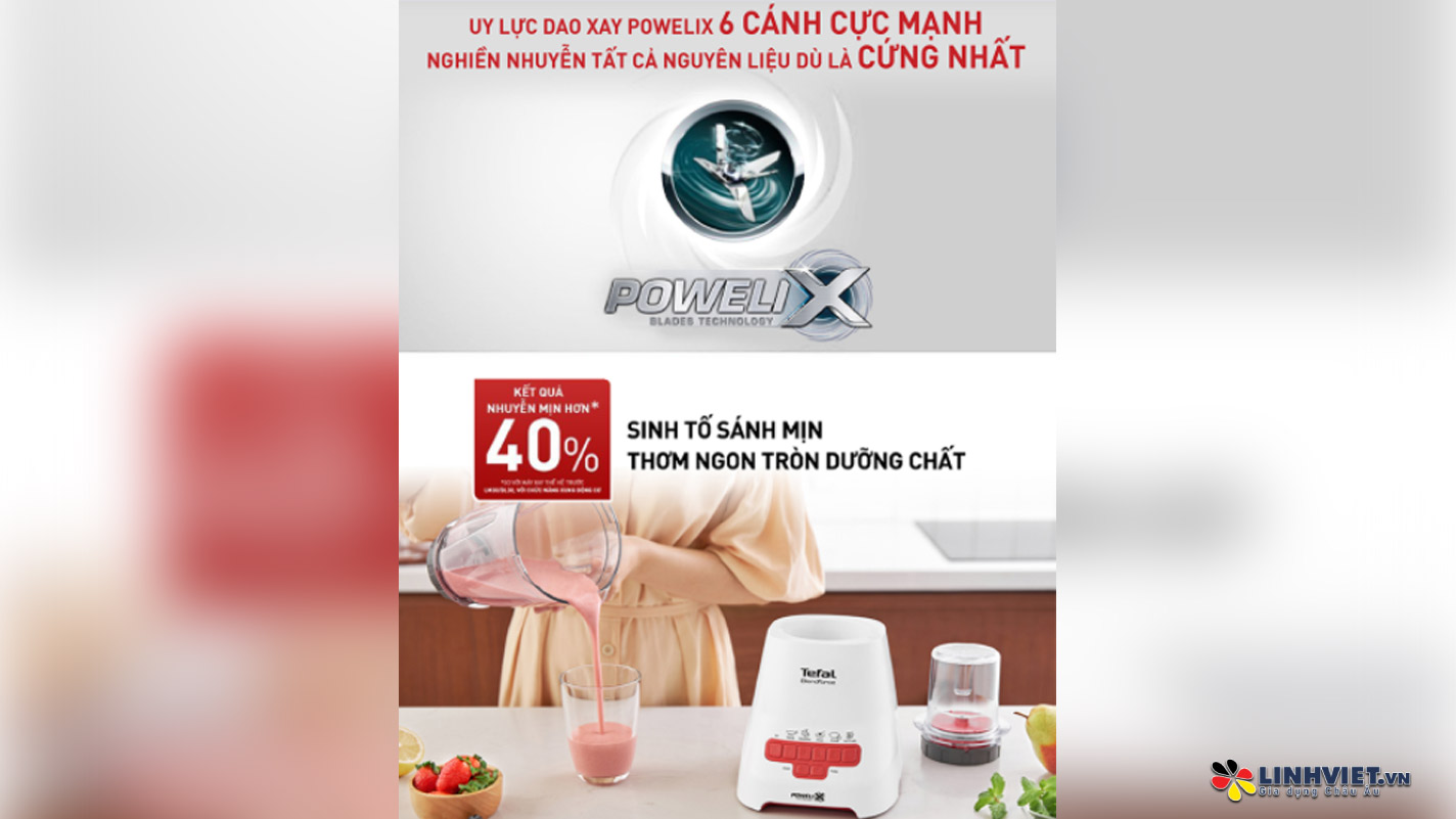 Máy xay sinh tố Tefal Blendforce piano BL477566 được thiết kế hiện đại, đẹp mắt, công suất mạnh mẽ, phục vụ tốt nhu cầu xay thực phẩm trong gia đình.