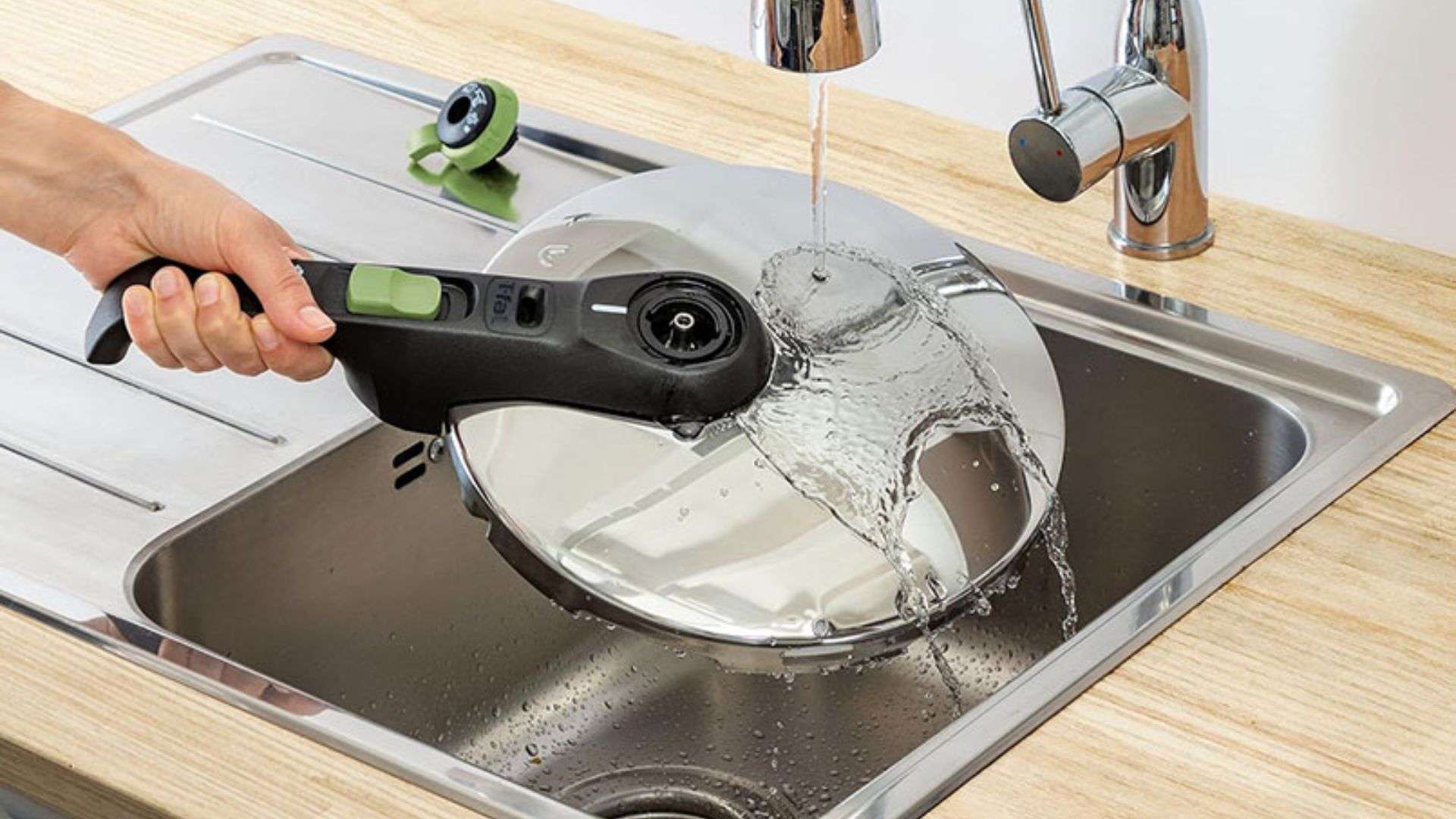 Nắp và tay cầm có thể tháo rời dễ dàng, thuận tiện khi rửa và bảo dưỡng. Toàn bộ thân nồi và khay hấp đều an toàn với máy rửa chén, giúp tiết kiệm thời gian dọn dẹp.