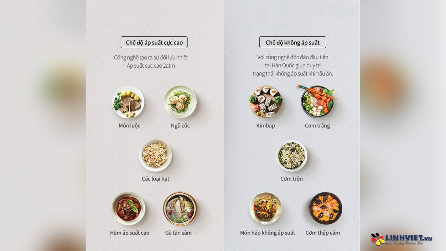Nồi được tích hợp 2 chế độ nấu: không áp suất và áp suất cao lên tới atm, đáp ứng sở thích nấu ăn đa dạng của mỗi người.