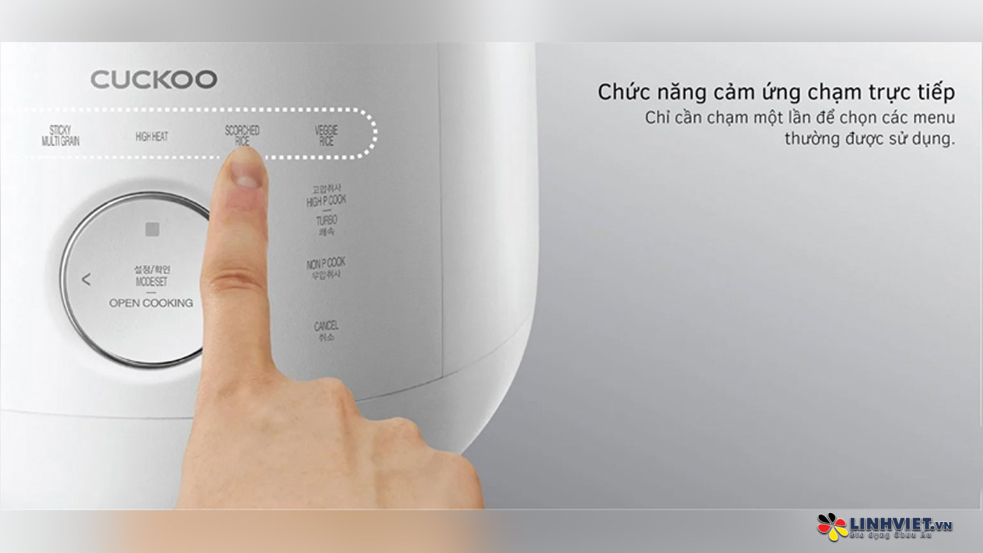Với chức năng cảm ứng chạm thông minh, người dùng có thể dễ dàng tùy chỉnh các chương trình nấu chỉ với một lần chạm, mang lại sự tiện lợi và tối ưu hóa trải nghiệm sử dụng.