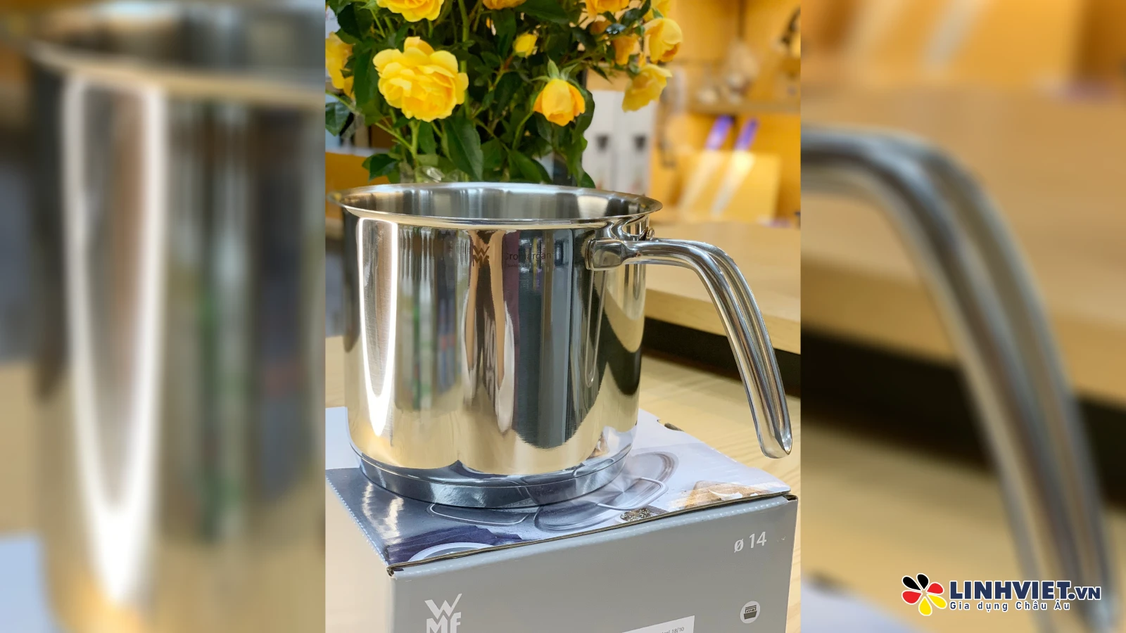Nồi nấu sữa WMF Provence Plus 14cm mang đậm phong cách thiết kế Pháp, chế tác bởi thợ lành nghề, tạo điểm nhấn sang trọng cho gian bếp. Với tay cầm thiết kế chuyên dụng, người dùng dễ dàng cầm nắm và rót sữa từ nồi. Nồi có kích thước cao 12.51 cm, đường kính 14 cm và dung tích 1.7L, phù hợp cho các nhu cầu nấu nướng nhỏ như hâm sữa hoặc nấu sốt.
