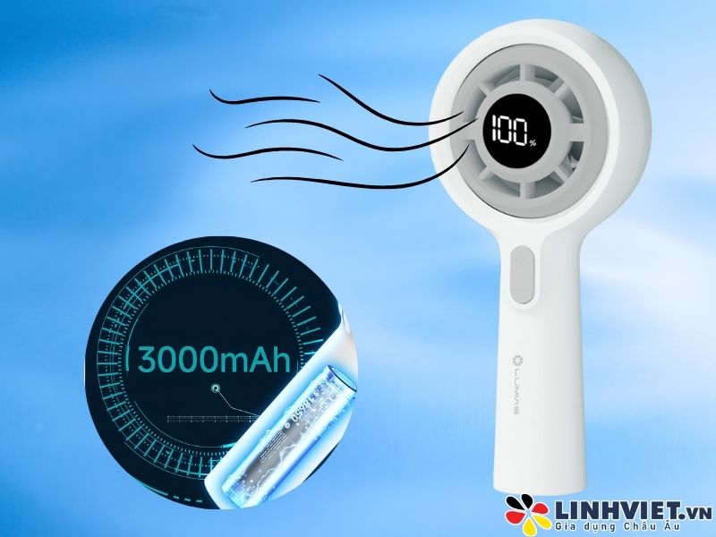 Nhờ sử dụng pin lithium-ion 3000mAh, Quạt cầm tay mini Lumias X6 Max có thể hoạt động liên tục tới 10 giờ chỉ với một lần sạc. Dù bạn mang theo đi học, đi làm, đi dã ngoại hay du lịch, chiếc quạt nhỏ này sẽ đồng hành cùng bạn mọi lúc, giúp xua tan nắng nóng một cách dễ dàng.