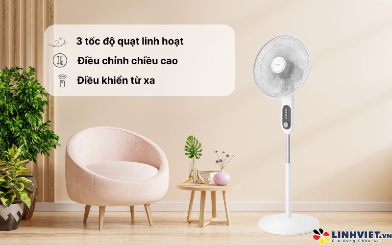 Đặc biệt, quạt còn có khả năng điều chỉnh độ cao linh hoạt từ 112cm đến 131cm, đáp ứng nhiều nhu cầu sử dụng khác nhau.