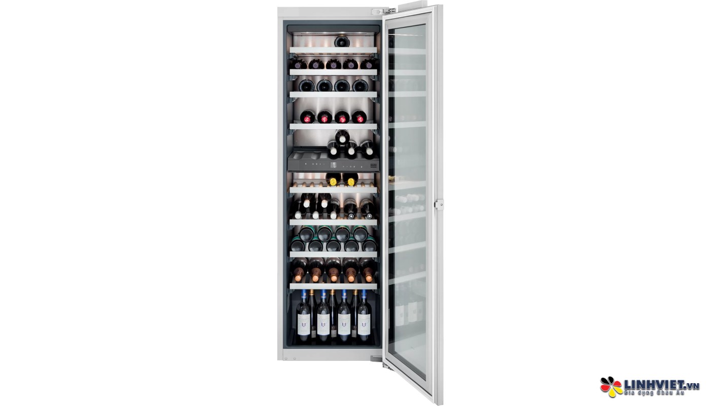 Bên trong tủ, các khay đựng được chế tác từ gỗ sồi kết hợp với nhôm, vừa chắc chắn vừa tăng thêm phần đẳng cấp. Với tổng cộng 10 khay, trong đó 8 khay có khả năng mở rộng, tủ rượu Gaggenau RW282263 tối ưu hóa không gian lưu trữ, cho phép bảo quản đến 80 chai rượu (dung tích chuẩn 0,75 l). Đặc biệt, tủ còn có khả năng lưu trữ chai magnum lớn, tạo sự linh hoạt và thuận tiện cho người dùng.