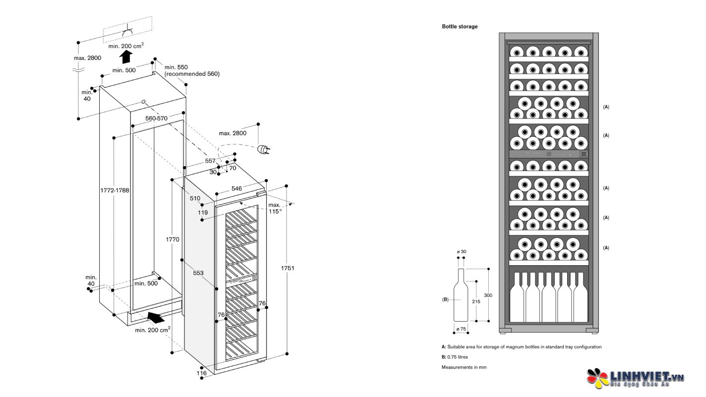 | Đặc trưng | Dung tích 80 chai (dựa trên chai tiêu chuẩn 0,75 l). |