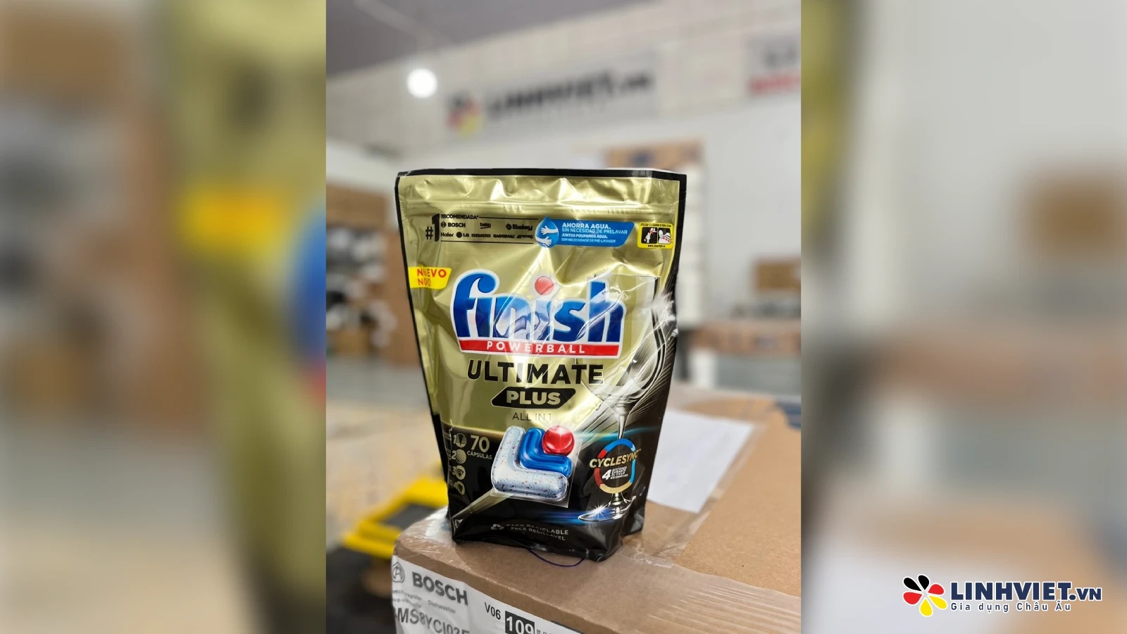 Viên rửa bát Finish Ultimate Plus All in One 70 viên là sản phẩm thế hệ mới, sử dụng công nghệ CYCLESYNC™ giúp làm sạch tối đa, đạt tiêu chuẩn châu Âu và được nhiều phụ nữ Việt tin dùng. Với 14 chức năng chính và 3 pha màu, sản phẩm có khả năng loại bỏ vết bẩn gấp 4 lần so với các sản phẩm thông.